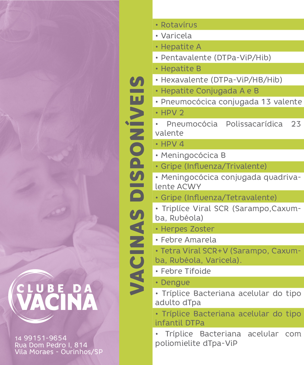 A melhor forma de se proteger dessas e de outras doenças é a prevenção. Mantenha sua caderneta em dia. Confira as vacinas disponíveis no Clube da Vacina: